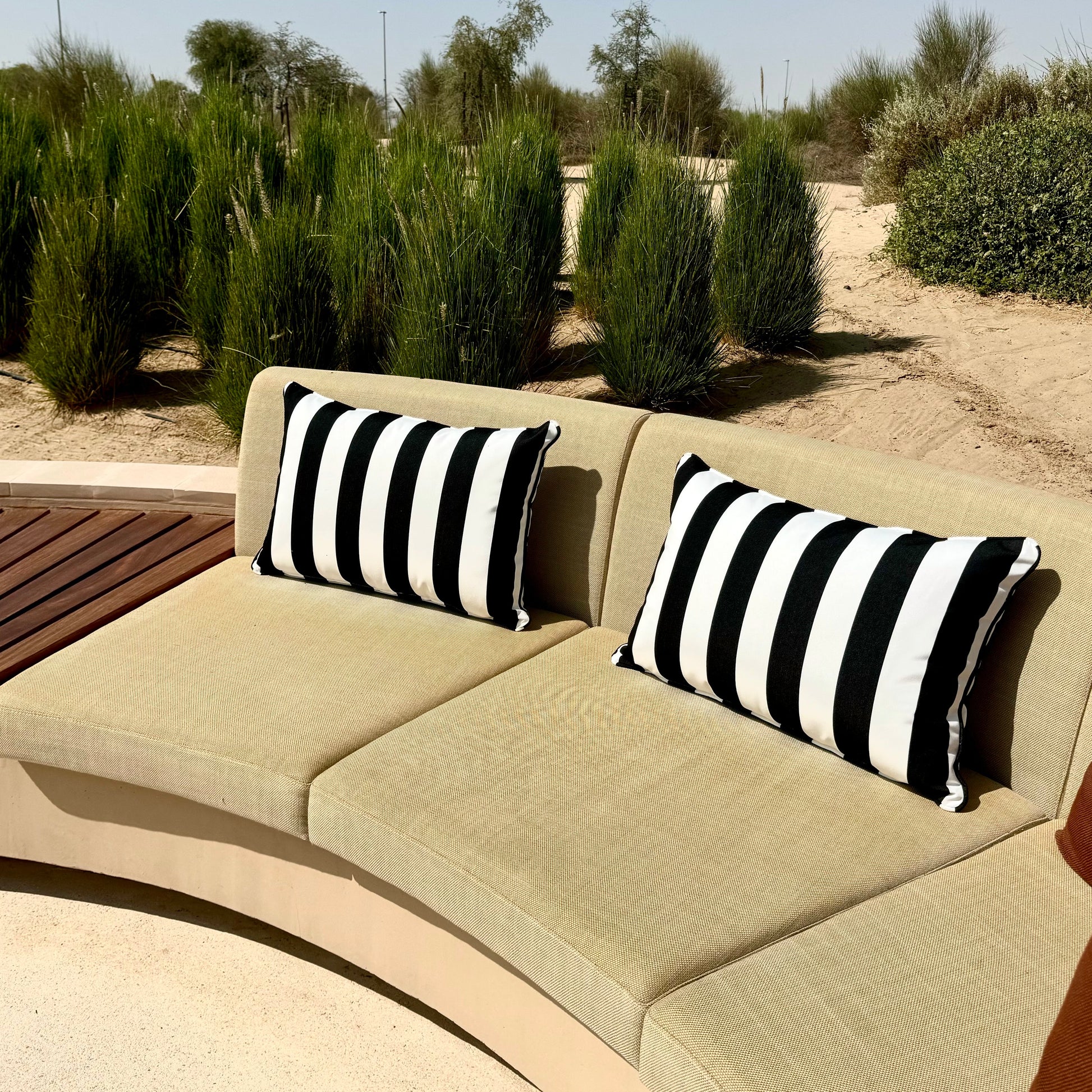 Monochrome outdoor cushion with piping. Each set includes 2 cushions (filling included).